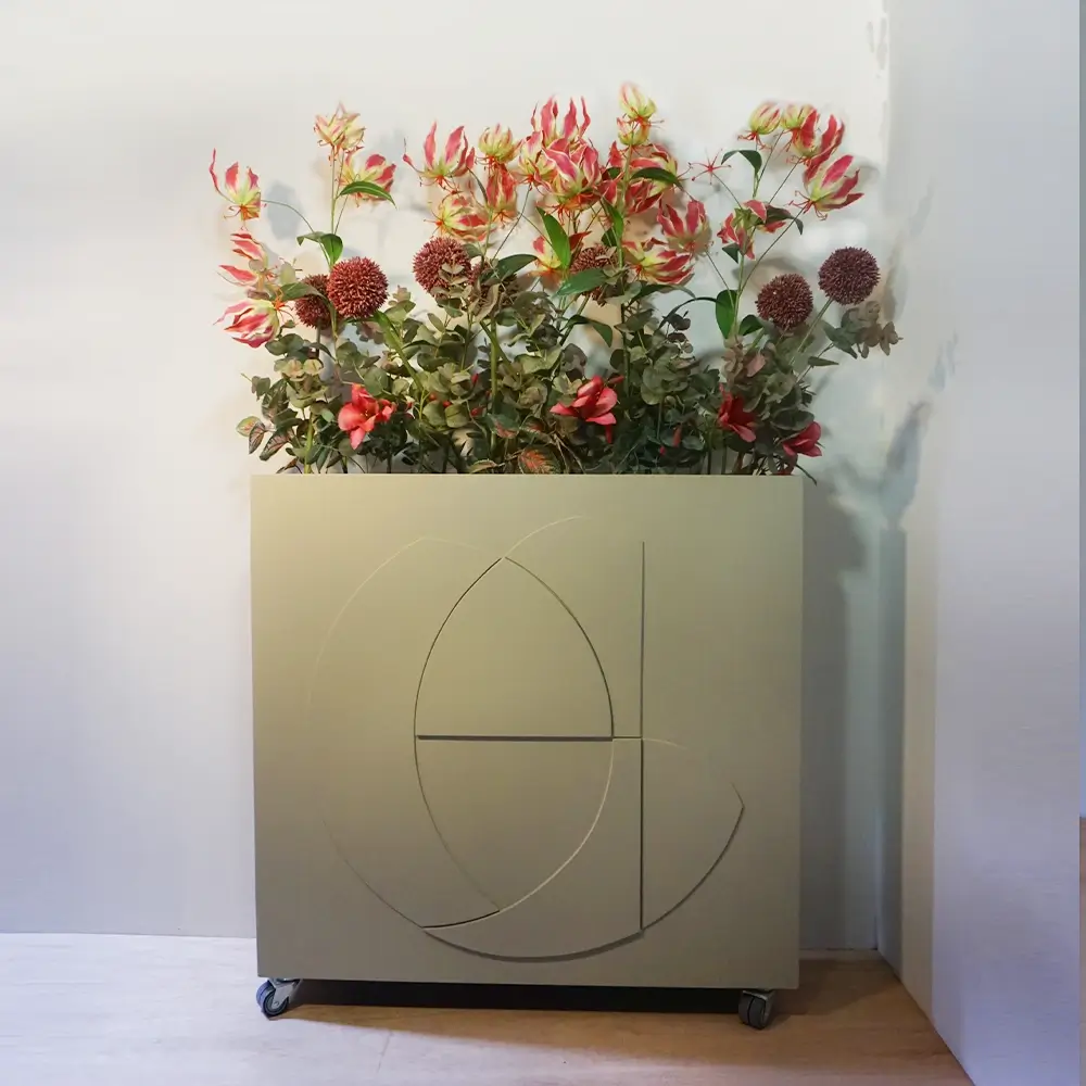 Dieses PflanzKübel ist eine einzigartige Kombination aus einem InnenpflanzKübel und einem 3D-Gemälde. Mit dieser Kombination können Sie auf praktische Weise Kunst zurück in Ihr Interieur bringen. Durch die Rollen an der Unterseite eignet sich dieser Pflanzkästen praktisch als Raumteiler zur Unterteilung und Abschirmung von Büros und anderen Räumen.