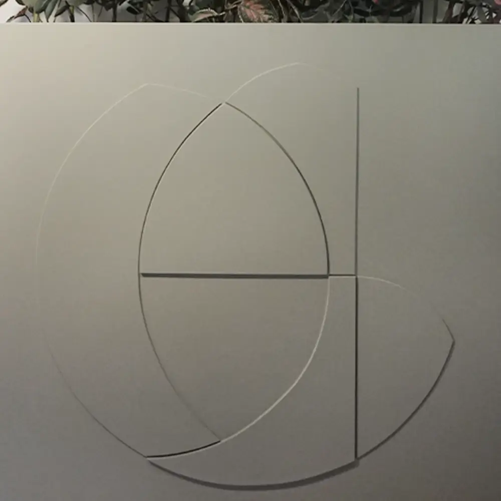 Das Auge Pflanzkübel ist ein einzigartiges minimalistisches 3D-Gemälde mit der Illusion von Formen, die aus fehlenden Teilen entstehen. Es besteht aus zwei übereinander liegenden Lagen Plattenmaterial mit unterschiedlichen Stärken, die für zusätzliche Tiefe sorgen.