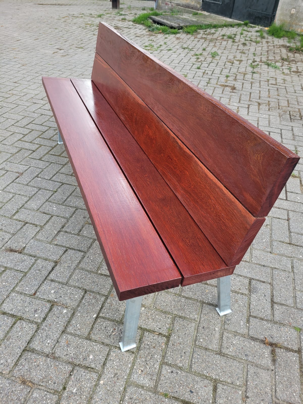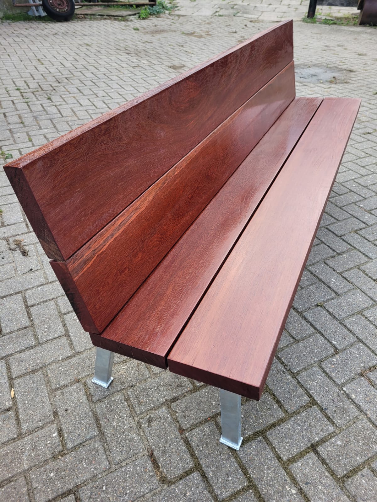 Gartenbank aus Azobe Hartholz mit Rückenlehne & Design Beine